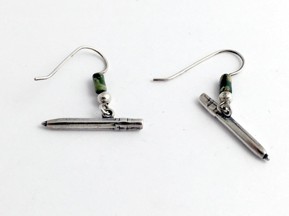 This is a fun pair of sterling silver pencil earrings. These measure approx. 1 1/4 in long. The earwires are sterling silver, shown here with tube shaped unakite beads. Made in the USA. Buy them just the way they are shown, or I can make these with almost any colored crystal or glass you would like. A selection of gemstones and freshwater pearls are also available, just email me for your options. Great for gifts! Perfect for the writer or teacher in your life! Or for yourself, of course!