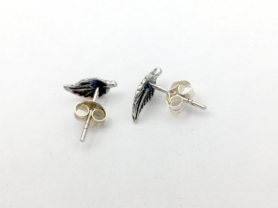 Sterling Silver small leaf stud earrings, leaves, tree, trees, garden, gardener