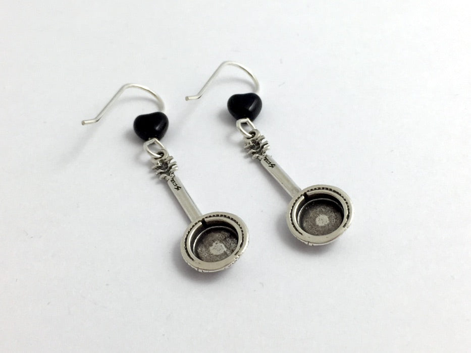 This is a darling pair of sterling silver banjo Earrings. These measure approx. 1 7/8 in long. They are pictured here with black glass heart beads on the sterling silver earwires. All of the metal on this pair is sterling silver. Made in the USA. Buy them just the way they are shown, or I can make these with almost any colored crystal or glass you would like. A selection of gemstones and freshwater pearls are also available, just email me for your options. So cute ! Perfect for the banjo player in your life!
